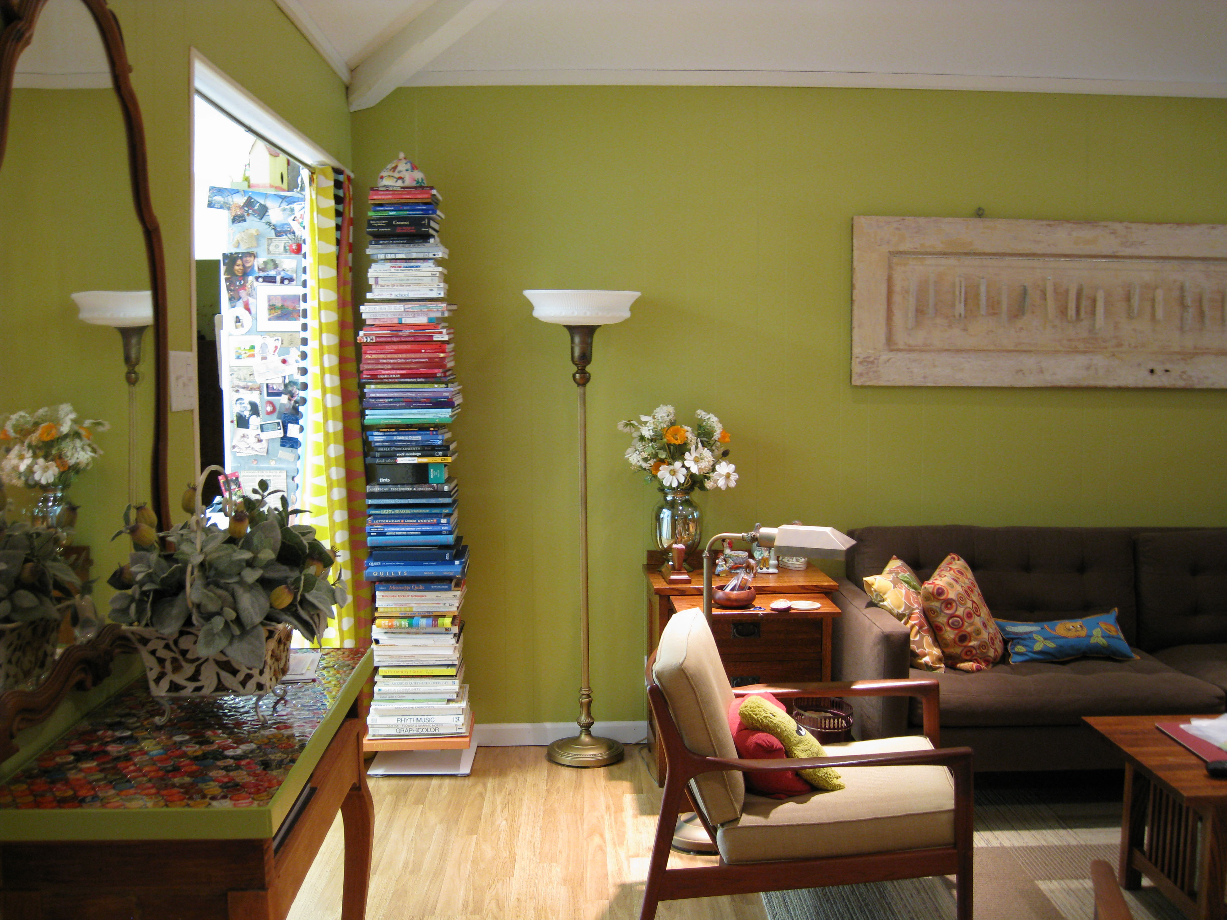 This came as a surprise to Steve. I hadn’t talked about painting and he can’t read my mind. I’ve wanted to change colors for a couple of years, I just never had time. These are older pictures that show the green walls in the living room and yellow walls in the studio.