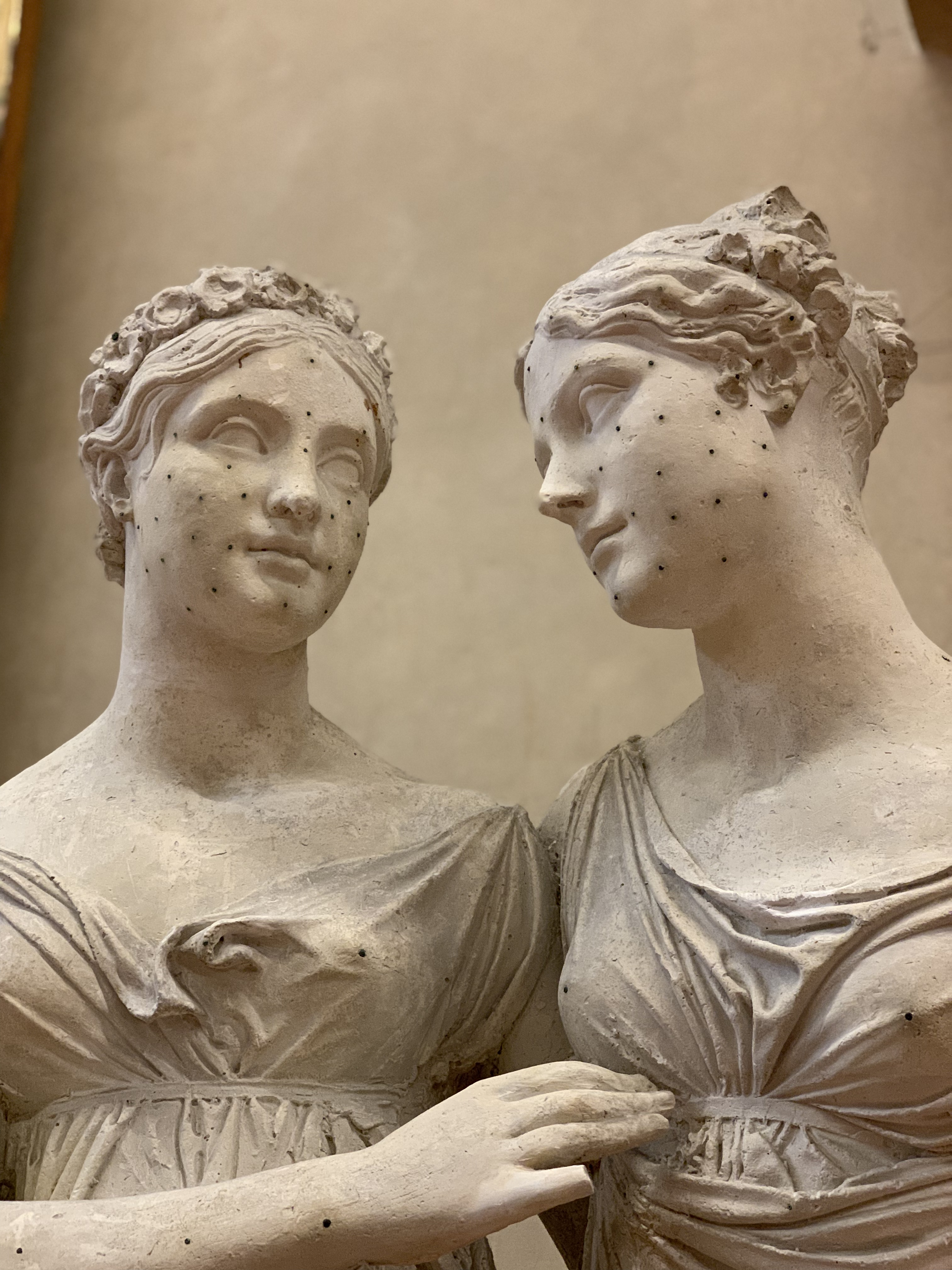 There was a room full of plaster models that sculptors worked from. I watched a video that explained the how the plaster casts were made and how small models were used to make the larger sculptures. I suspect you can find that information if you google it.