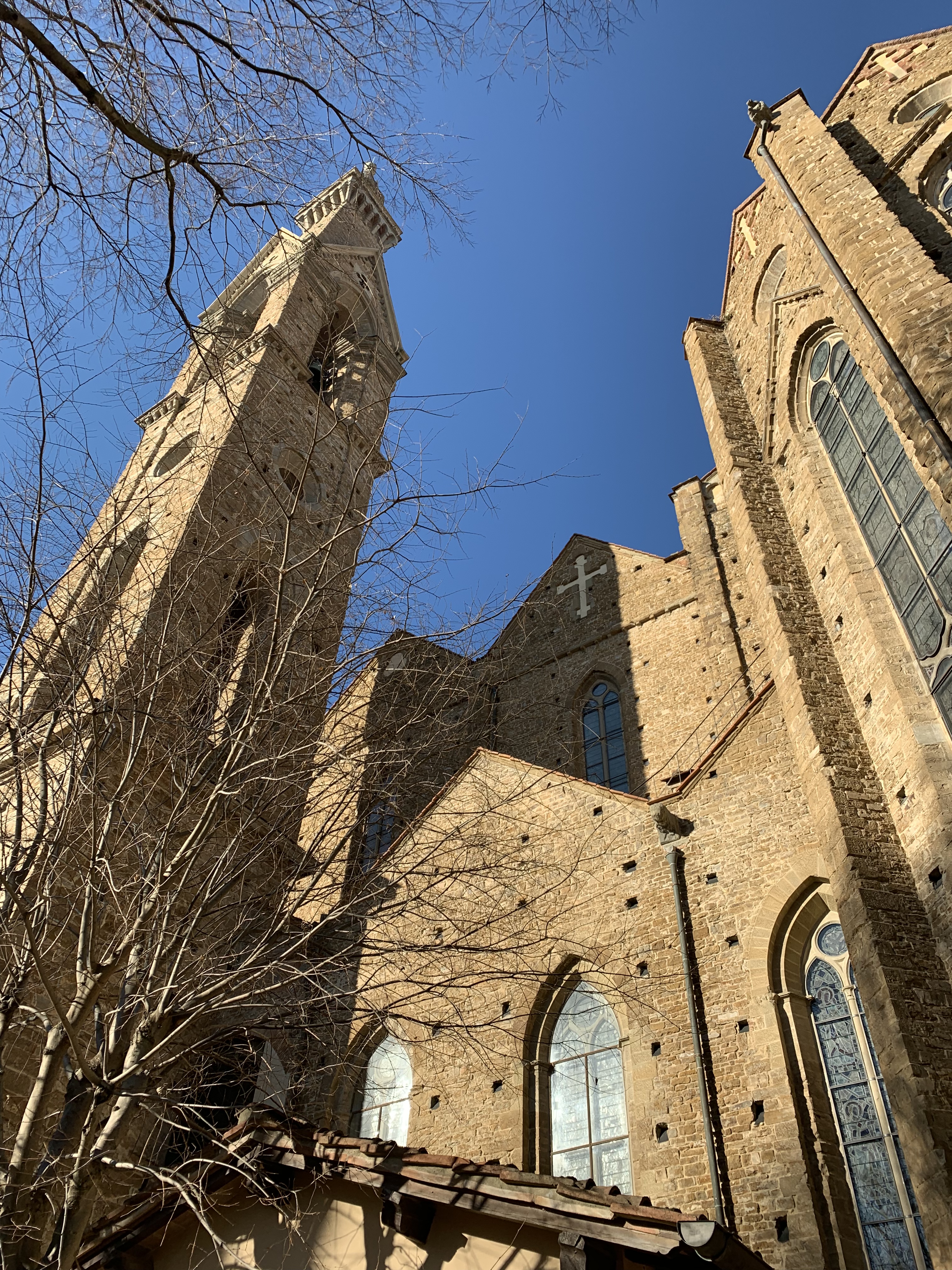 We went to Santa Croce. If you come to Florence, be sure to go around to the back of this church to the School of leather. Students learn to make leather goods, and there are wonderful pieces for sale. I bought a lovely, large black leather purse. As I explained to Steve, it may have cost of lot but it would have been a whole lot more in elsewhere. I’ll ask Karen to take a photo of me carrying it tomorrow.