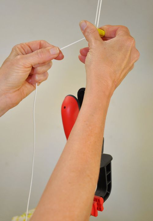 To raise or lower the clamp, squeeze the toggle and pull the other end of the cord. As you use the clamps, you will figure out how much of the excess nylon cord you want to cut off. I like to be able to reach it from a sitting position.