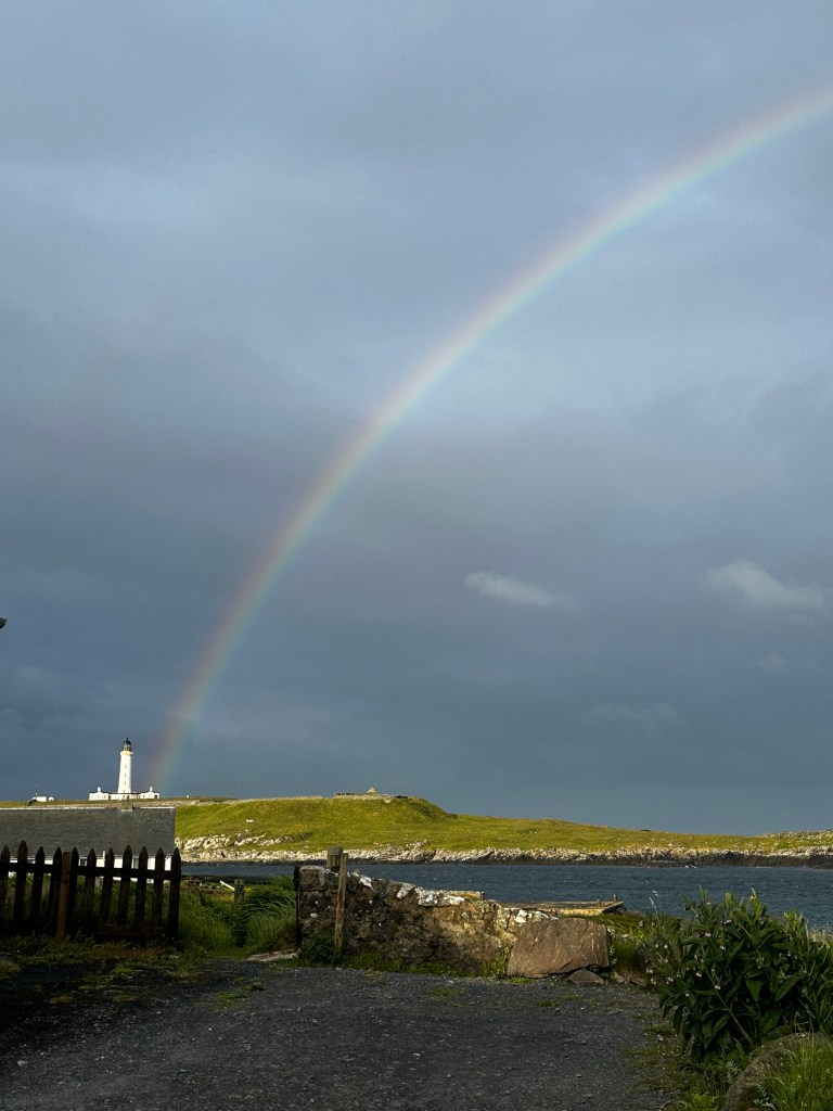Rainbow outside our door. Lots of white walls and colorful trim. Love it so much!Houses and harbor, PortnahavenTiny dancer…There may be a phone in there. Old, beat up, lovely.