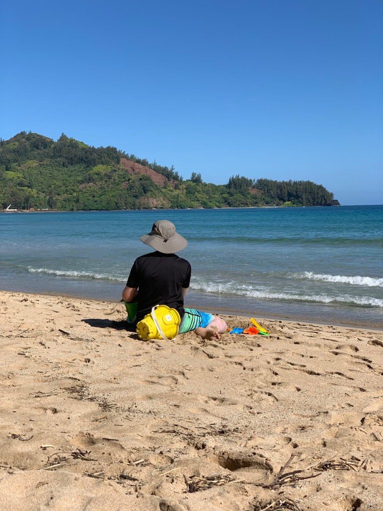 We went to Hanalei Bay on Thursday. The crowds were light, the water was cooler than it was in Waikiki. Jack made sandcastles and we walked the beach looking for shells.