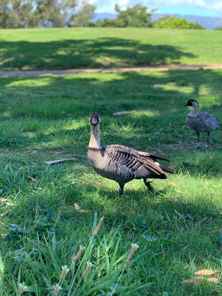 There are lots of nene (Hawaiian goose) on the golf course. And there are small lizards in great abundance.