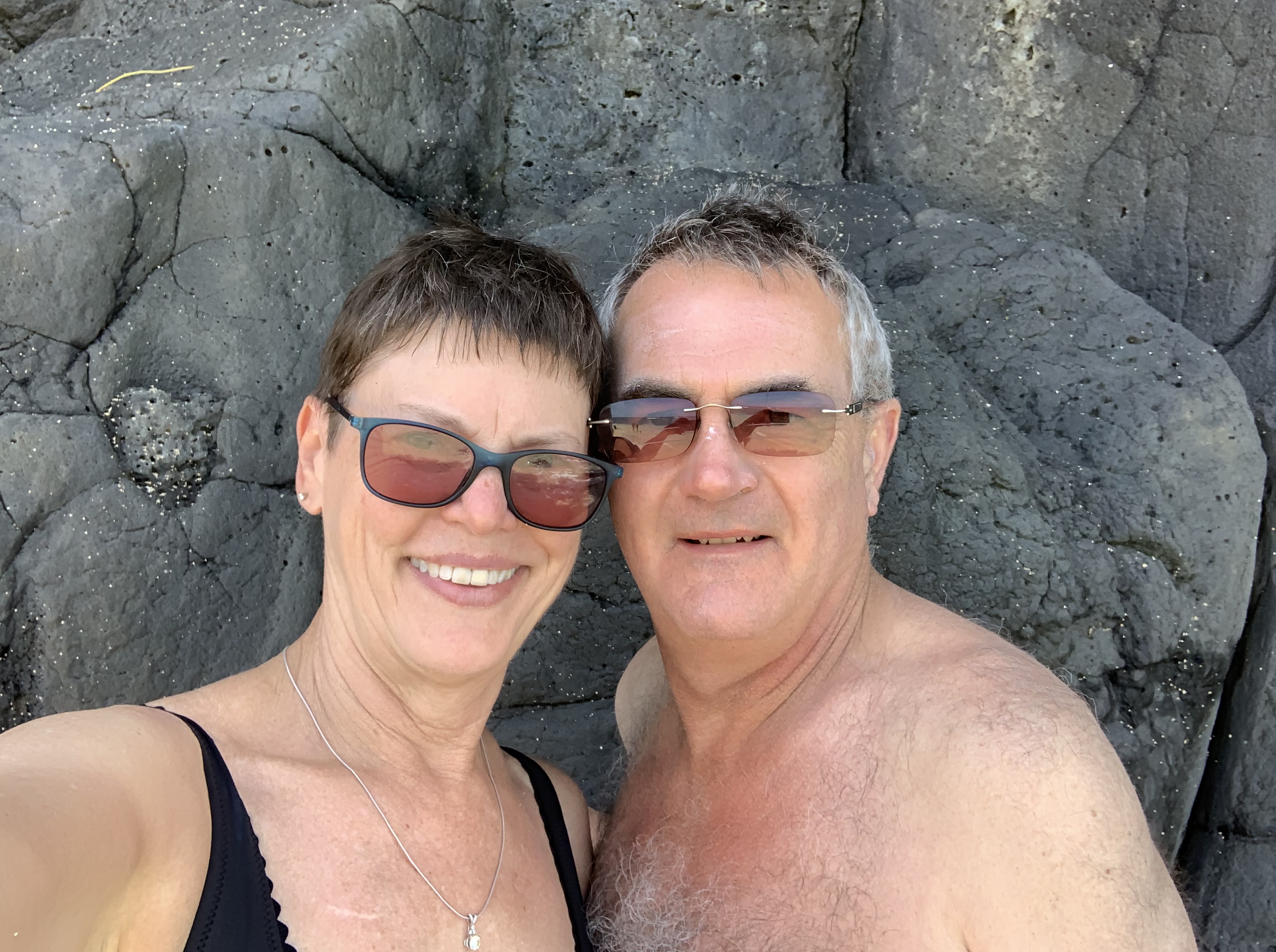 There are ropes to hold onto as you back your way down steep, often slippery ‘stairs’. This is Jack when he declared he couldn’t do it. I went on down to see what came next. The path got worse but the beach was lovely!