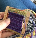 A while ago, I had an idea to use the Purl & Loop Minute Weaver to make a design for my Yazzii organizer. I love beautiful thread, and this seemed like a fun way to work with it. The woven squares are sewn to a piece of dark blue wool that is then sewn to the top of my Yazzii.