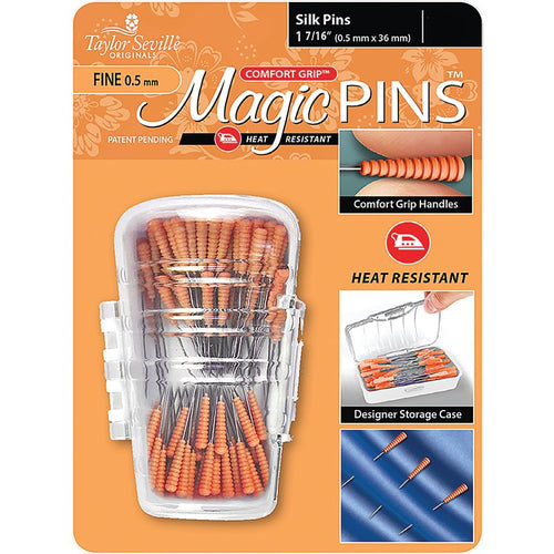 They are 1 7/16″ long, a little bit flexible and come to a very sharp point. The end of the pin is ridged to make it easier to hold. The plastic is heat resistant to prevent melting during ironing. The head isn’t bulky which will make it lay flatter as you sew on the machine. All in all, our lucky winner, Lo Ann Van Hemert is going to get a set of very nice pins!