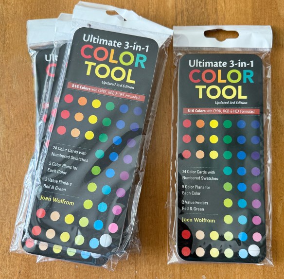 Amy, my friend and publisher, donated 3 Ultimate 3-In-1 Color Tools to give away and that means that there are 3 lucky winners this week – Debbie, Jamis & ScrapGuru!!!! There are 24 color cards plus an in-depth instructional guide make to make color planning easy. The handy, take-along size- allows you to refer to it at home, in your studio, or while shopping. There are 2 excellent videos on our website to show you how it works.