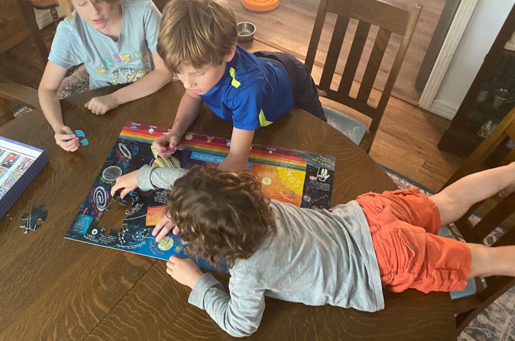 The Form & Color toy is great fun wrapped around an activity that makes anyone, young or old, use your brain. Kids love it and surprisingly enough, I do too. What makes this special is that the half-square triangle shapes are tangible, you can feel their shape, and easily move them around.