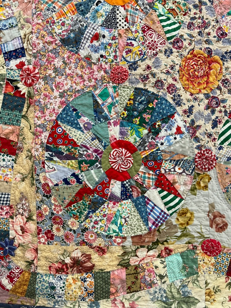Generally speaking, when we go to the effort to cut fabric apart and sew it back together, we do so for a reason. I wonder if the maker of the 9-patch just wanted to sew and had no other plan… because that’s what it looks like. And I absolutely understand that because I have done that myself with equally questionable results 🤣.