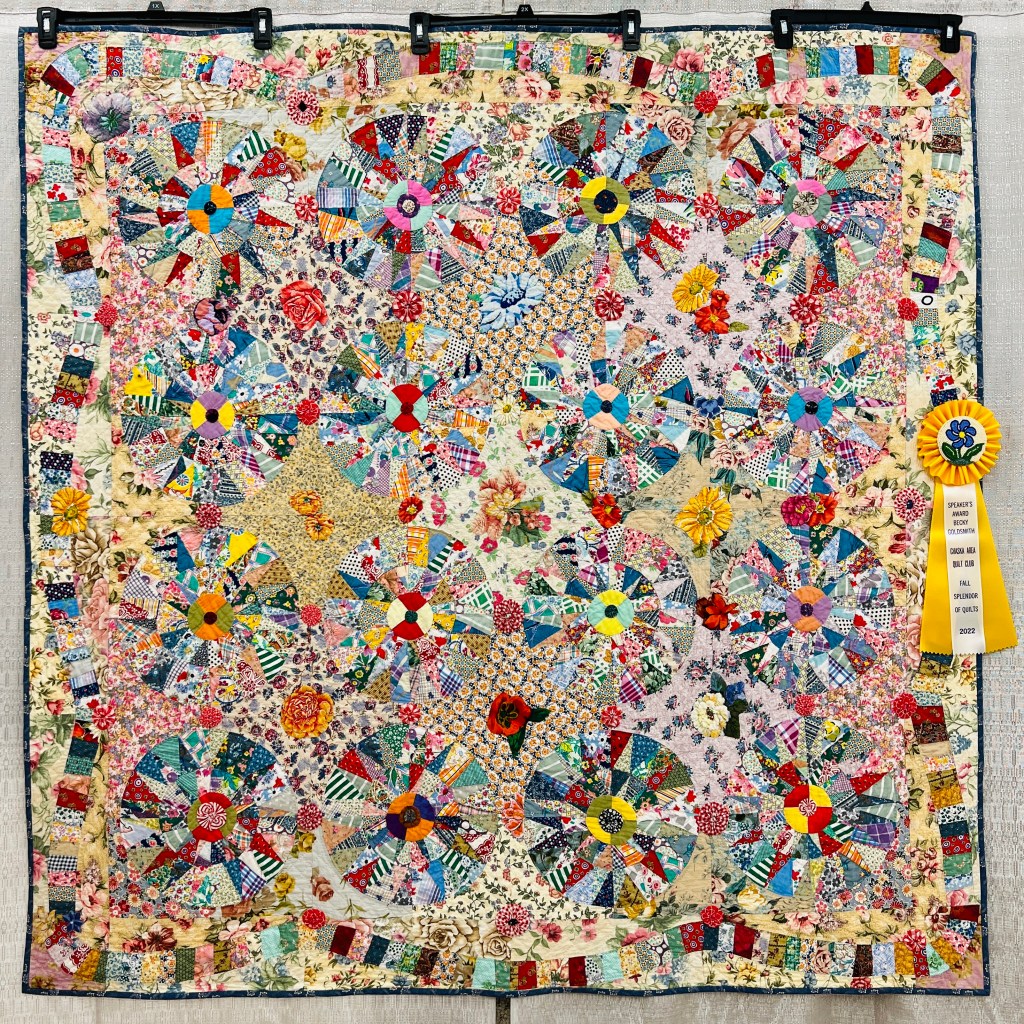 But that doesn’t mean you can’t successfully test the boundary between pattern and chaos. I wrote about the quilt below, Carnival, made by Joan Goetteman and Audree Sells, in this blog post. It was my Judge’s Choice at the Chaska Fall Splendor Quilt Show in 2022.